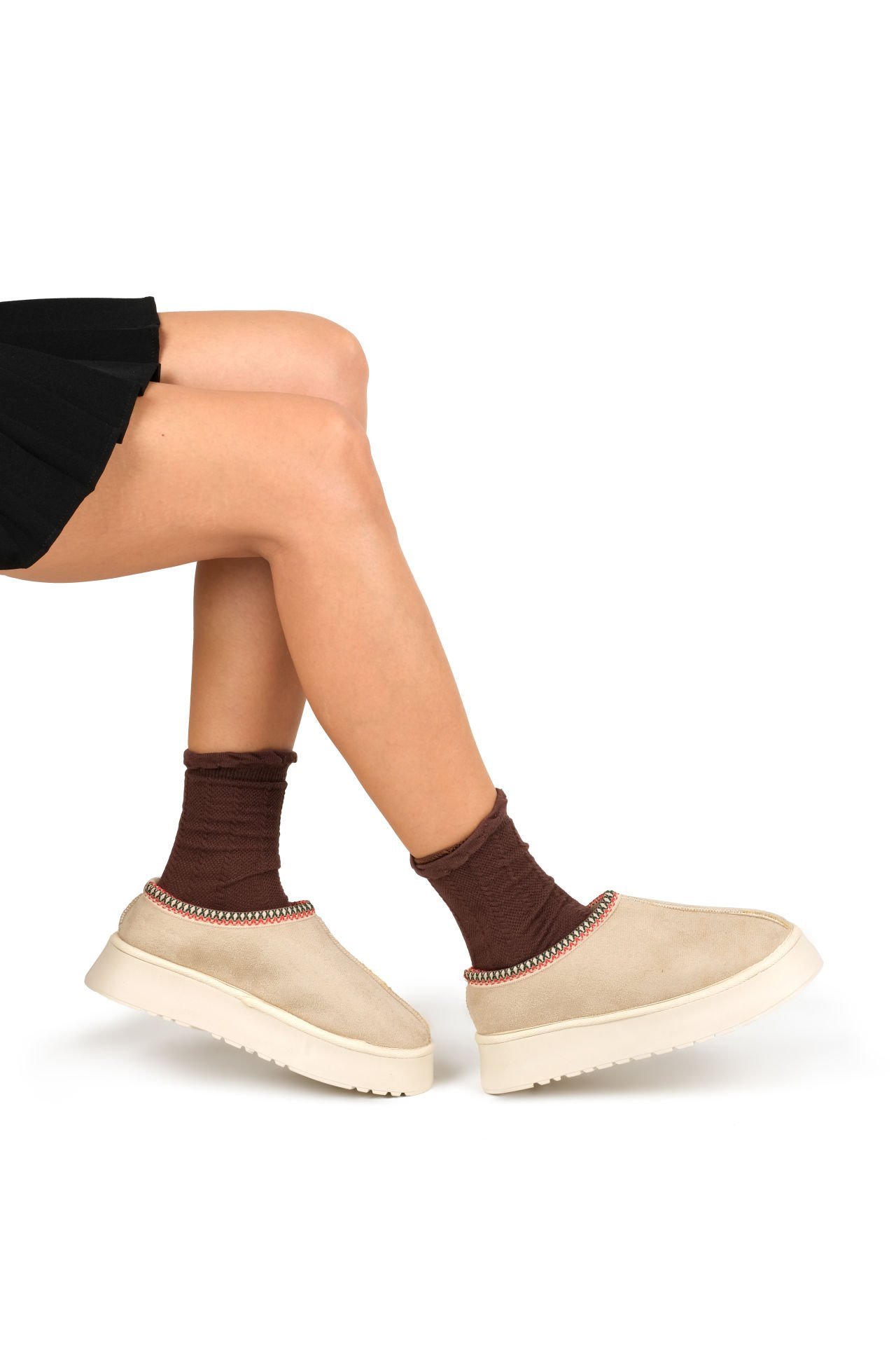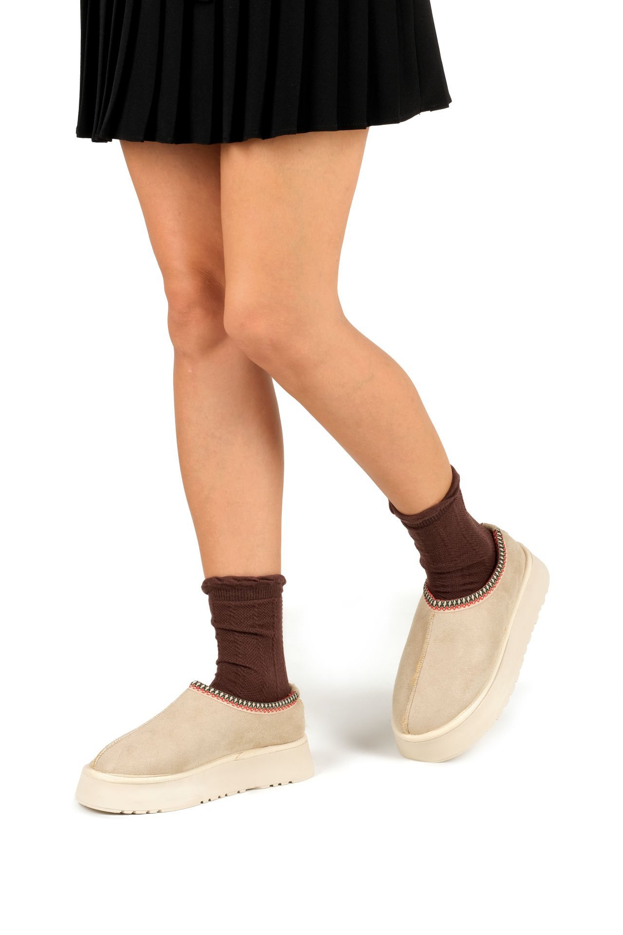 Süet İçi Kürklü Kalın Taban Yarım Bot 39 - Bej